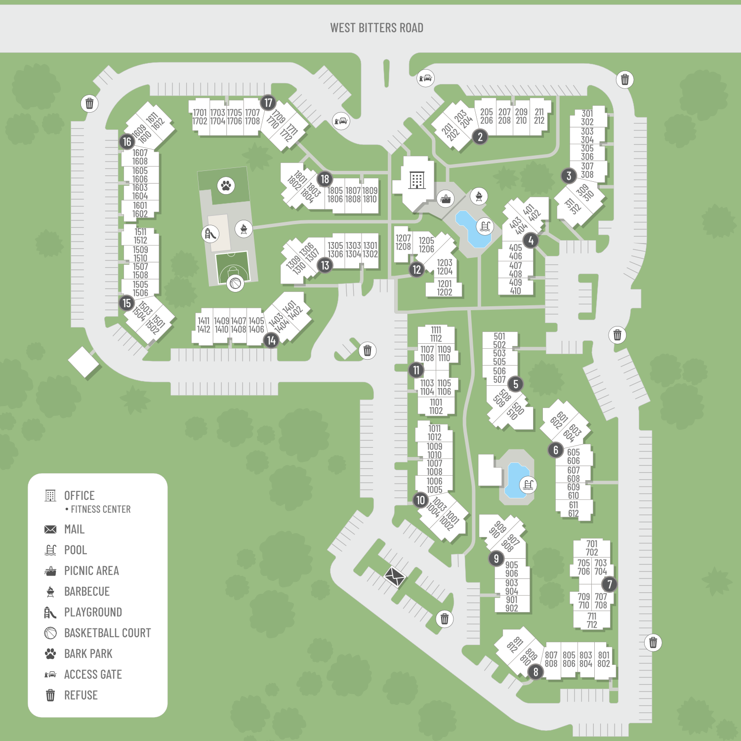 Select a floor plan or bedroom count to view those units on the overhead view on the site map. If you need assistance finding a unit in a specific location please call us at 210-787-3187 TTY: 711.